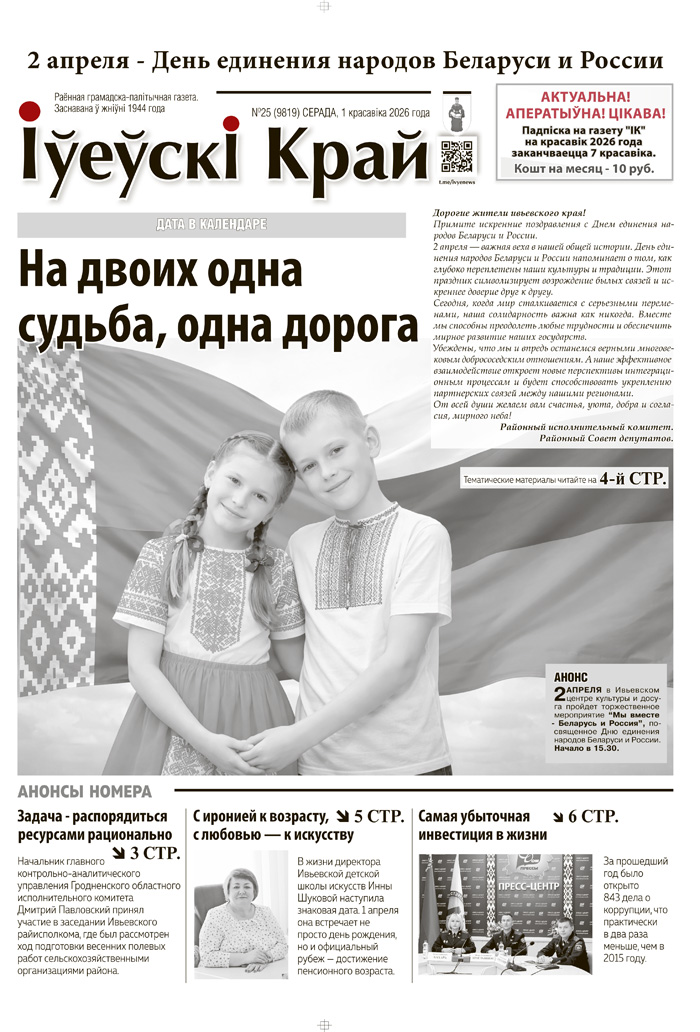 Читайте свежий номер районной газеты «Іўеўскі край».