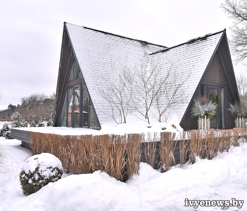 В деревне Залейки, что всего в нескольких километрах от Ивья, появилось место, которое смело можно назвать архитектурной и туристической диковинкой. Среди привычных глазу сельских пейзажей высится футуристичный дом-«шалаш» с огромными окнами.