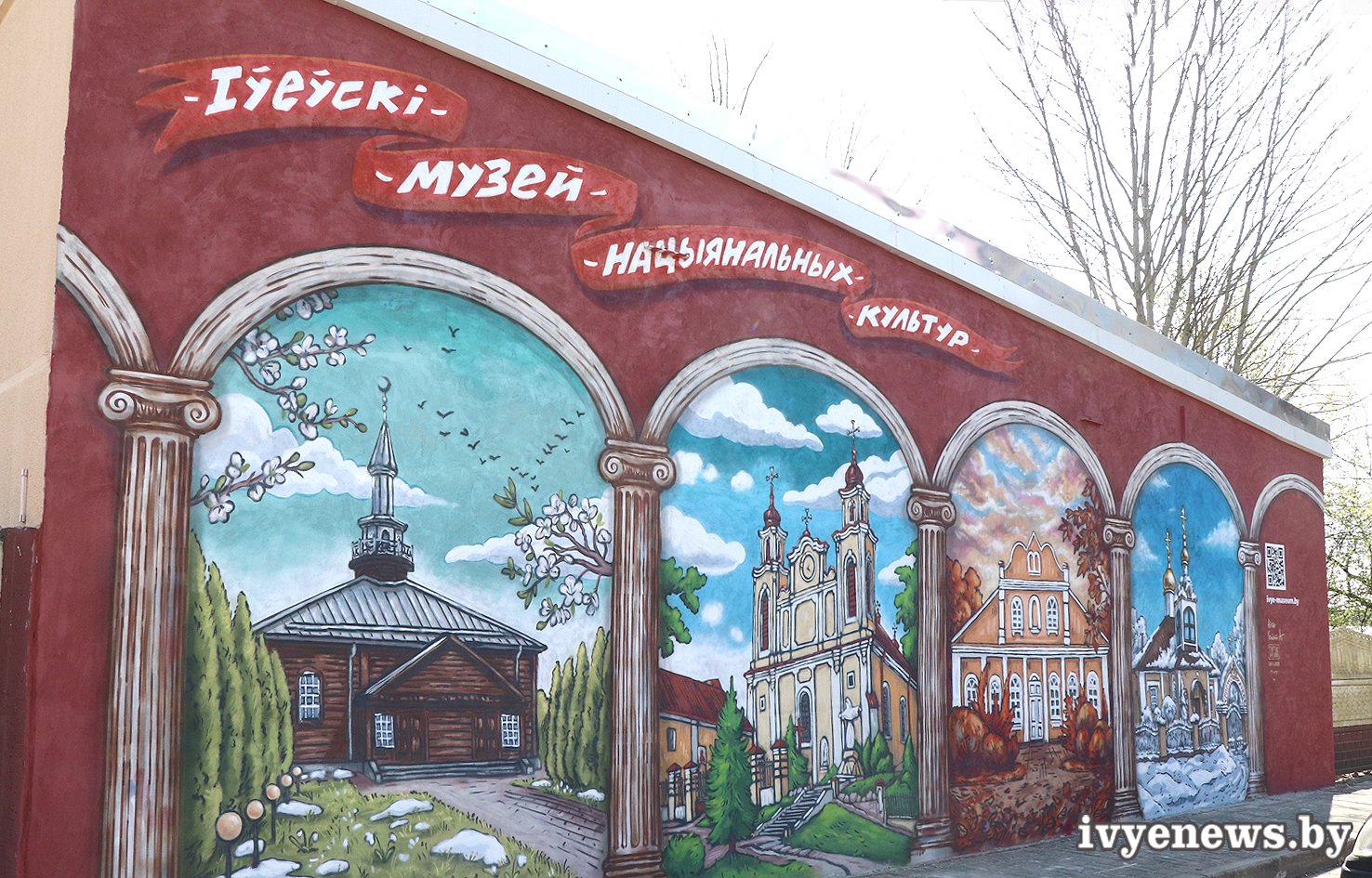 Сцяна будынка нібы ажыла – на ёй расквітнеў дзівосны мурал, які ўвабраў у сябе ўсю шматграннасць і духоўнае багацце нашага горада. А побач, над уваходам, з’явілася стыльная шыльда «Музей», якая адразу здымае ўсе пытанні ў падарожнікаў: яны дакладна на правільным шляху.