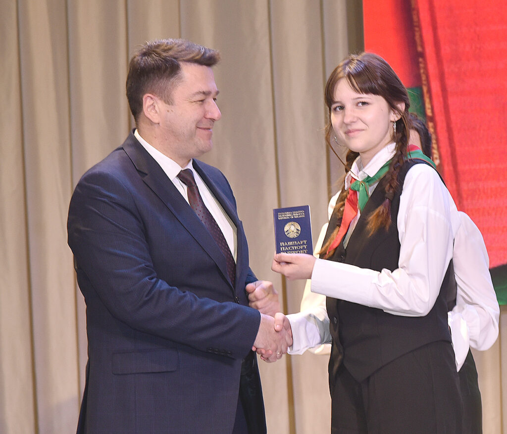 — Сегодня для нас очень волнительный и ответственный день. Быть гражданином Республики Беларусь – это высокая честь. Каждый из нас, я думаю, уверен в том, что наша жизнь, свобода, права надежно защищены государством, и эту защиту обеспечивает Основной Закон нашей страны – Конституция. Получив паспорт, мы стали полноценными гражданами Республики Беларусь. Мы хорошо понимаем, что от нашего поколения зависит будущее нашего региона, нашей страны. Принимая на себя почетное звание граждан Республики Беларусь, мы будем своей учебой, своим трудом, своими делами укреплять доброе имя нашей страны. Мы клянемся быть достойными памяти наших дедов и прадедов, которые отдали свои жизни за честь и независимость нашей Родины. Обещаем отдавать все свои силы на процветание Республики Беларусь.