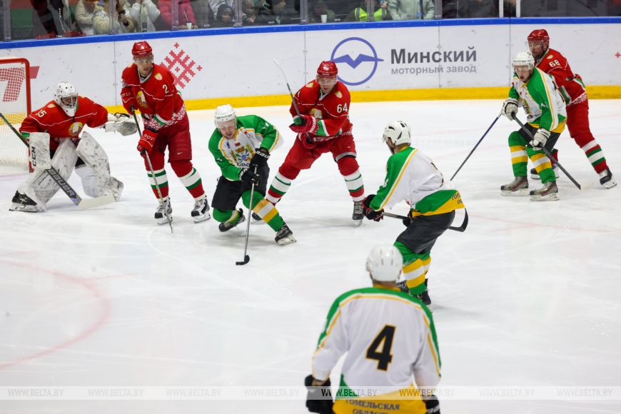 Сегодня на льду «Олимпик-Арены» в Минске дружина главы государства переиграла команду Гомельской области со счетом 12:2 (4:0, 4:1, 4:1).