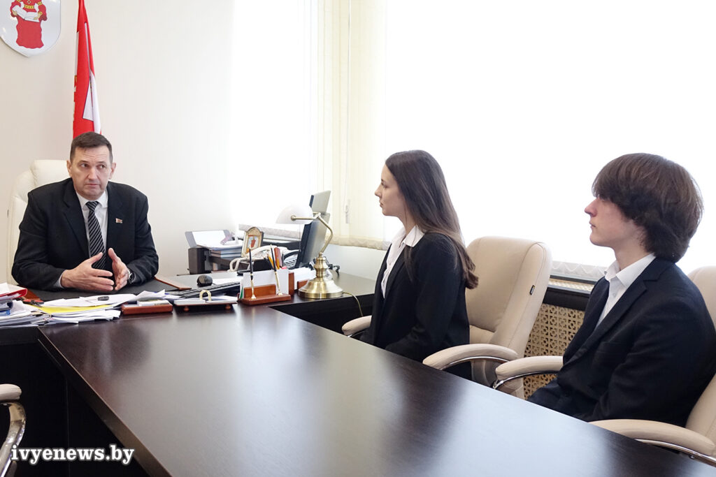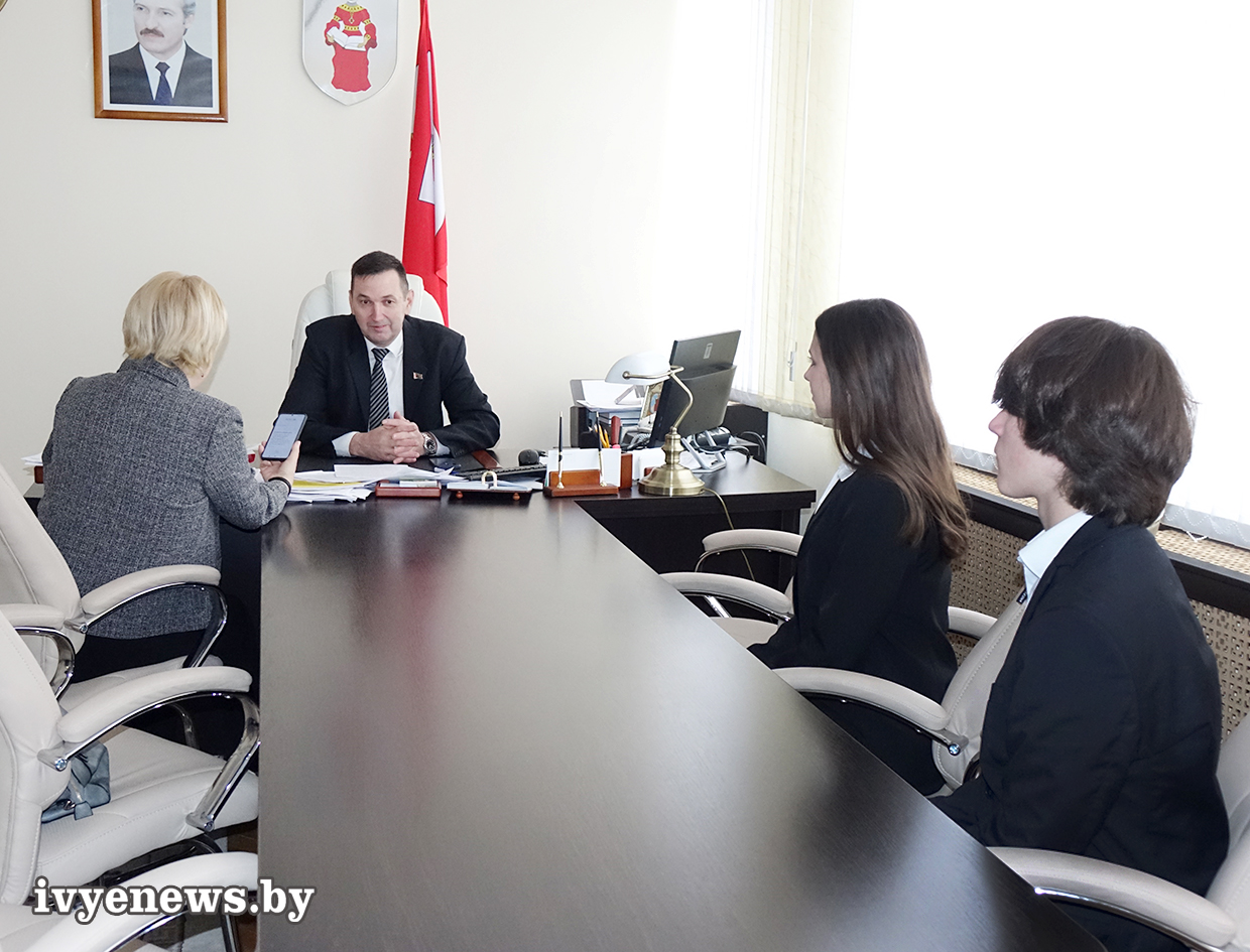 Сегодня учащиеся гимназии №1 г. Ивье и Ивьевской СШ ближе познакомились с «буднями» руководства района. В особенности работы Ивьевского райисполкома ребят погрузили председатель Ивьевского райисполкома Игорь Генец, председатель Ивьевского районного Совета депутатов Валентина Филон, заместитель председателя Ивьевского райисполкома по вопросам развития социальной сферы Анжелика Цисар, заместитель председателя Ивьевского райисполкома по экономике Елена Макуцевич.