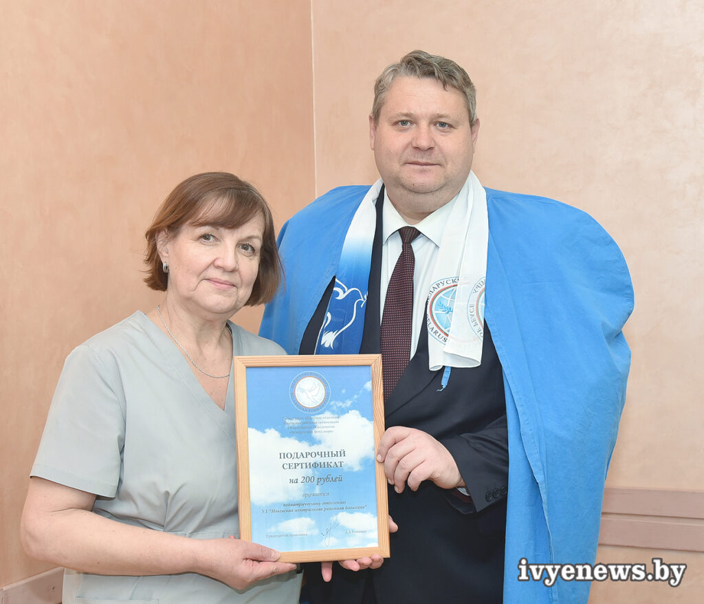 Всегда приятно получать подарки, но особенно радует то, что для такого большого числа людей не менее приятно дарить радость другим людям. И мы безмерно благодарны нашим учащимся, воспитанникам детского сада, их родителям, работникам школы за то, что так активно поучаствовали в этой доброй акции, — отметил директор Ивьевской начальной школы. От районной организации общественного объединения «Белорусский фонд мира» Александр Александрович вручил детскому педиатрическому отделению Ивьевской ЦРБ подарочный сертификат.
