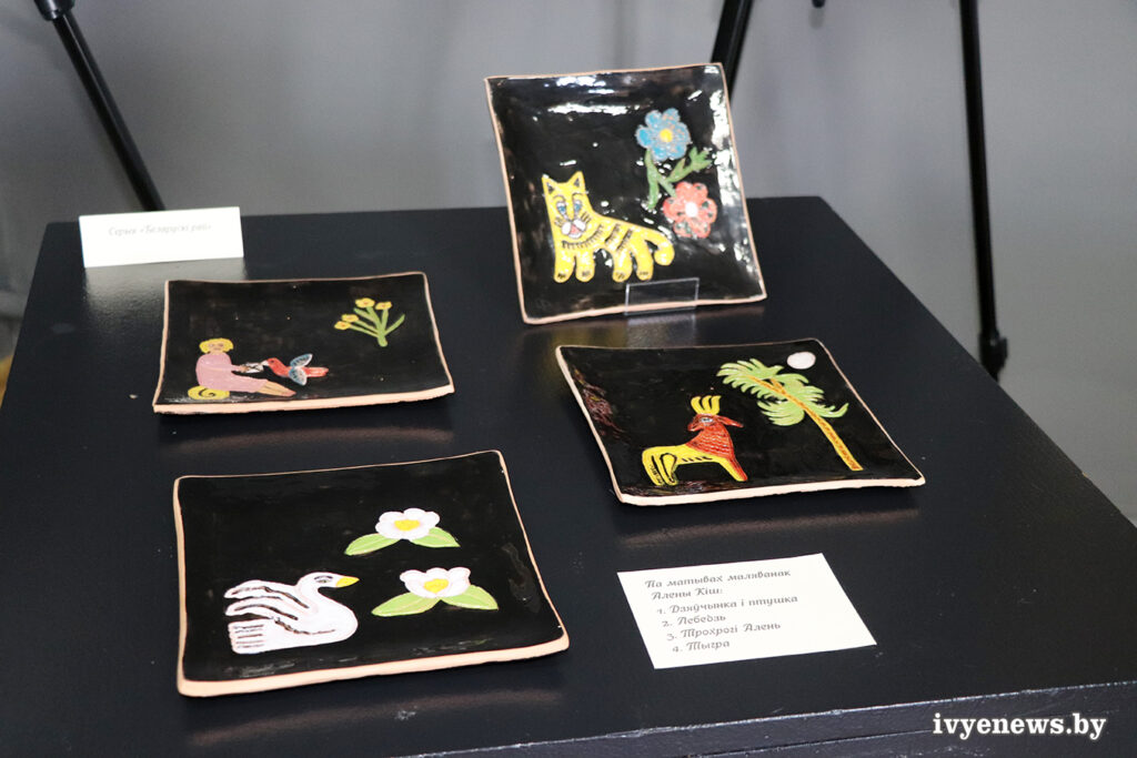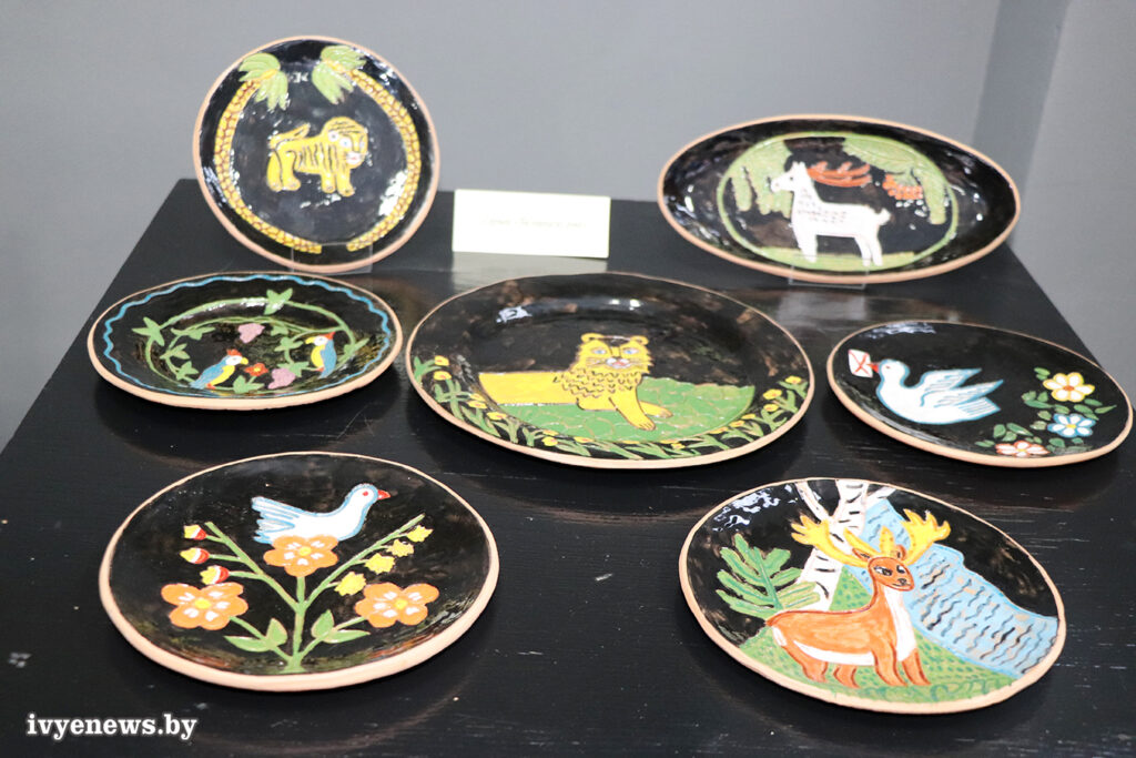 — Яна да нас прыехала не здалёк, а з суседняга Навагрудскага раёна. Гэта майстар-рамеснік. Вы толькі паглядзіце на гэтыя пальчыкі — яна імі робіць не толькі прадметы, якія вы бачыце на нашай выставе, але і мноства іншых рэчаў з гліны. Сёння Вольга Алегаўна прывезла невялічкую, але вельмі змястоўную калекцыю. Гэта сугуба калекцыя талерак. Але гэта не проста распісныя каляровыя талерачкі. Яны звязаны з цікавымі мастацка-дэкаратыўнымі напрамкамі нашай культуры. З якімі імёнамі і сюжэтамі? Пра ўсё гэта аўтар раскажа лепш за нас.