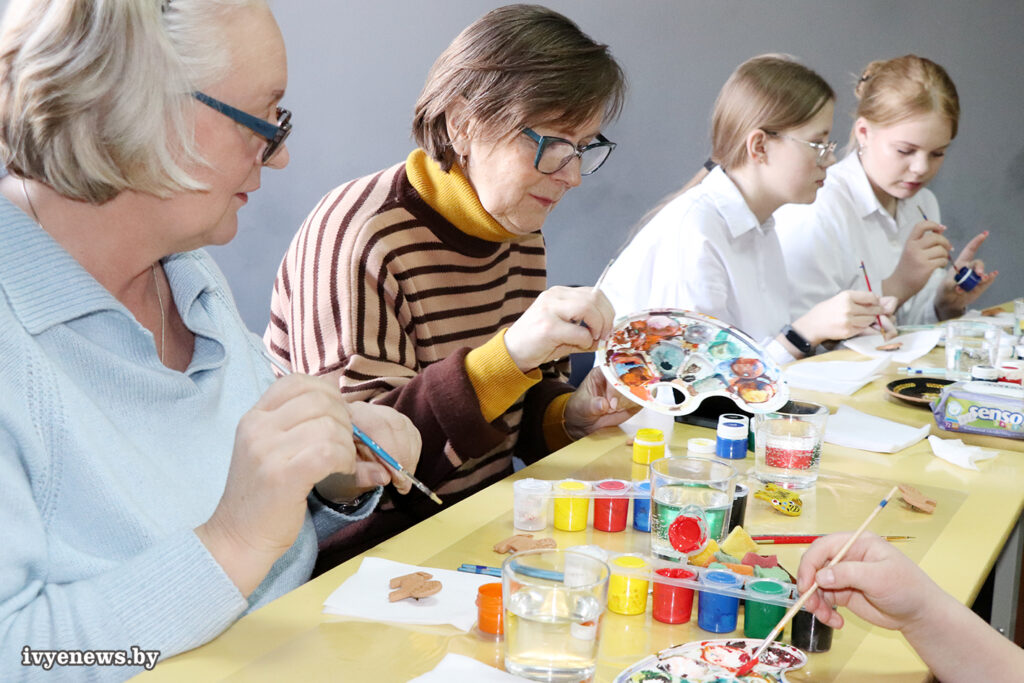 Пасля афіцыйнай часткі і жывога дыялогу з аўтарам, аматары ручной працы не спяшаліся разыходзіцца. У музеі тут жа пачаўся майстар-клас. За сталы селі і юныя школьнікі, і людзі сталага ўзросту. Кожны атрымаў кавалак керамікі і магчымасць дакрануцца да таямніцы пераўтварэння звычайнай зямлі ў твор. Сагрэты цяплом рук, кожны выраб стаў маленькім успамінам пра сустрэчу з сапраўдным мастацтвам у Іўі.