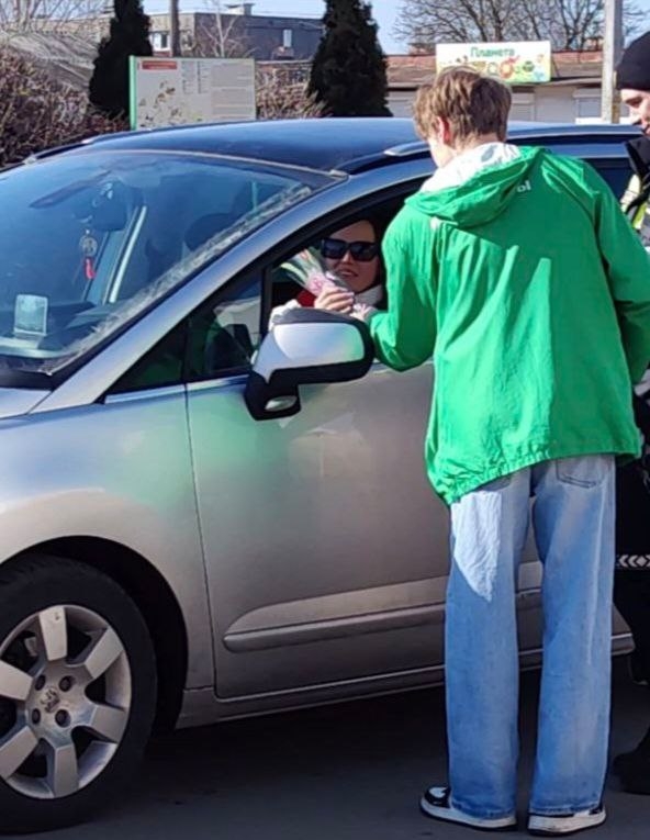 Молодежь вместе с сотрудниками ГАИ поздравляли ивьевчанок с 8 Марта