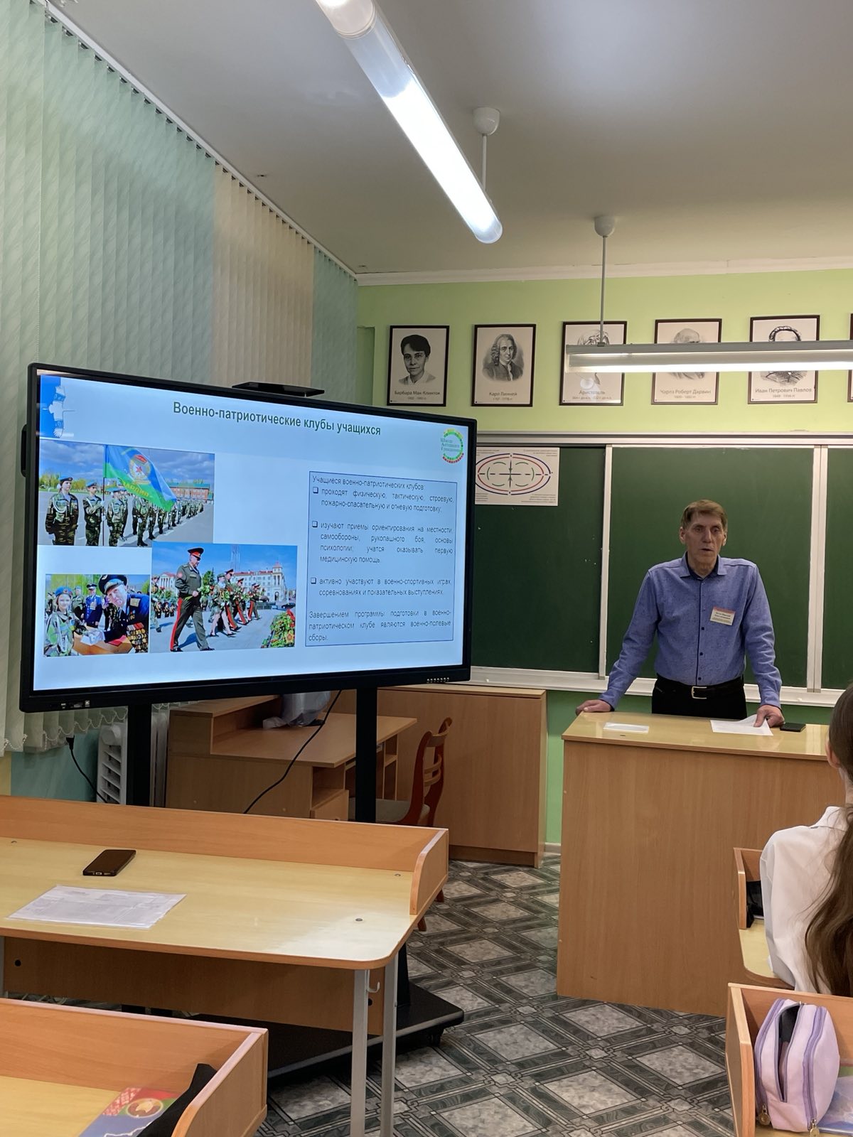 Старший инспектор сектора пропаганды и взаимодействия с общественностью Лавренов Михаил Викторович ознакомил учащихся с университетами, в которых можно получить военную специальность.