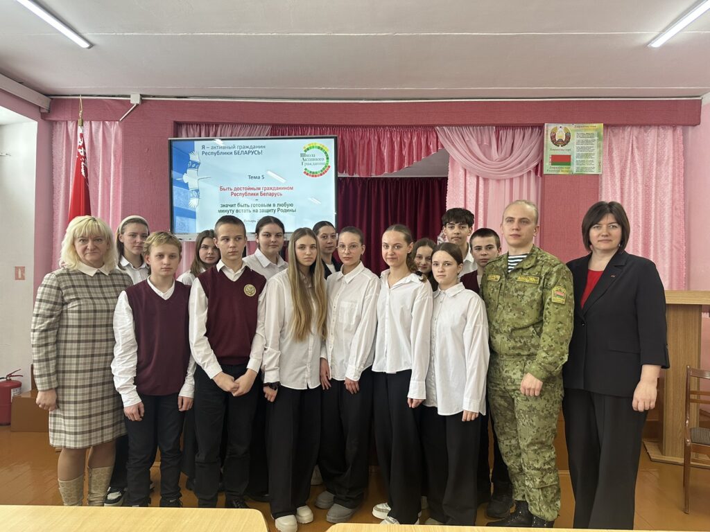 В современном мире, где информация распространяется со скоростью света, а вызовы и угрозы меняются с калейдоскопической быстротой, особенно важно формировать у подрастающего поколения глубокое понимание гражданского долга и патриотизма. Именно с этой целью в рамках информационно-образовательного проекта «Школа Активного Гражданина» (ШАГ) для учащихся 8-11 классов 29 января было проведено мероприятие, посвященное теме, которая звучит как призыв и наказ: «Быть достойным гражданином Республики Беларусь – значит быть готовым в любую минуту встать на защиту Родины».