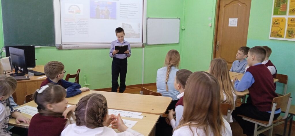 » Совместные проекты России и Беларуси», блиц- опрос о важнейших датах, достопримечательностях обеих стран. Ребята убедились, что у белорусов и русских много общего. У нас одна история, одна культура, идеи, развиваемся мы, помогая друг другу. А в этом наша великая сила.