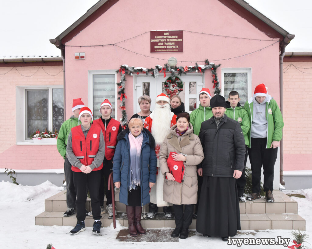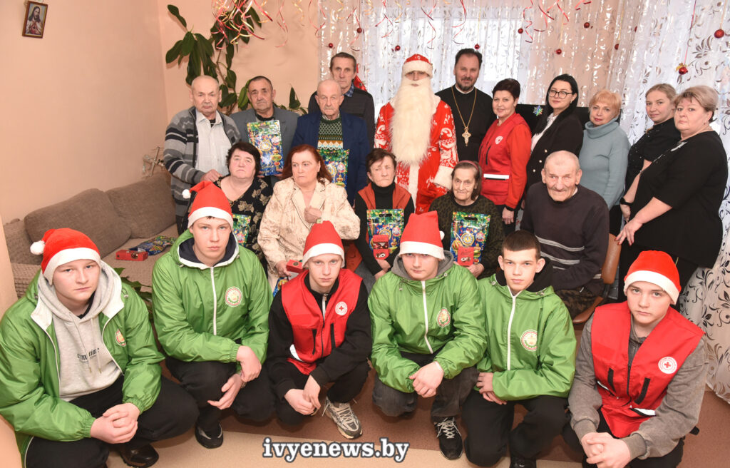 Волонтеры «Твори добро» и «Шаг навстречу» Ивьевского государственного колледжа вместе снастоятелем храма младенца Гаврии́ла Белосто́кского в г. Ивье протоиереем Вячеславом Пашкевичем, председателем Ивьевской районной организации БКК Ириной Кузьминой, первым секретарем Ивьевского районного комитета ОО”БРСМ” Марией Белковской в рамках акции «От всей души» поздравили постояльцев Дома самостоятельного совместного проживания для граждан пожилого возраста д Кривичи с Рождеством Христовым и Новым годом.