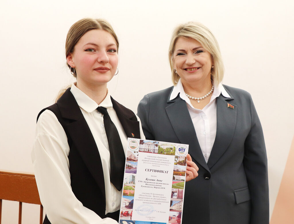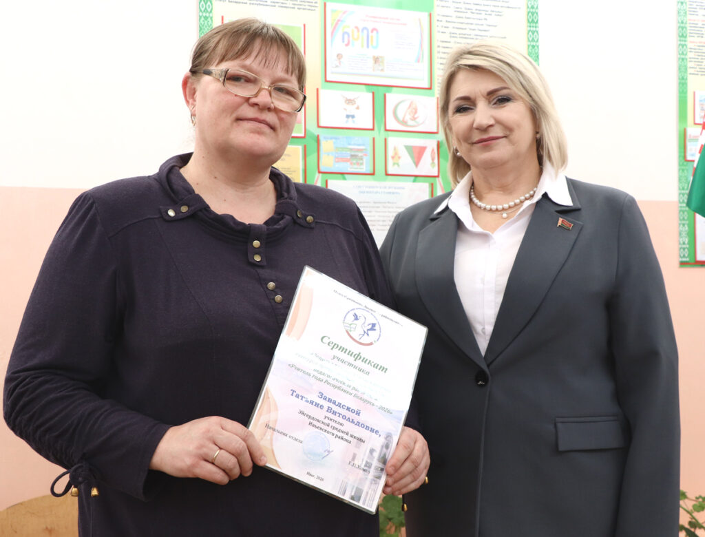 Сертификат участника районного этапа республиканского конкурса профессионального мастерства педагогических работников «Учитель года Республики Беларусь — 2026» вручили учителю Эйгердовской СШ Татьяне Завадской.
