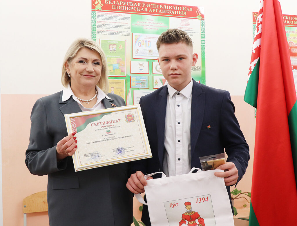 — Ежегодно Гродненский областной Совет депутатов проводит конкурс «Я – Законодатель». Нам очень интересно мнение детей по разным темам и очень приятно, что из нашего района принимают участие ребята с активной гражданской позицией. Поэтому я прибыла к вам с приятной миссией, чтобы наградить участника конкурса, который учиться здесь вместе с вами, его работа была отправлена на областной уровень, — сказала Валентина Филон.