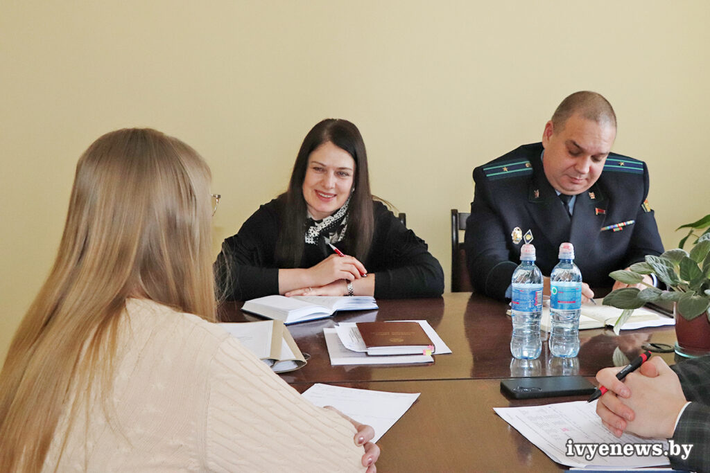 Правовой инспектор труда Гродненской областной организации работников здравоохранения Валентина Таврель проконсультировала жителей района по вопросам, связанным с трудовыми отношениями. На встрече присутствовали прокурор Ивьевского района Александр Широких, инспектор отдела по работе с первичными профсоюзными организациями Гродненского областного объединения профсоюзов Николай Телеш.