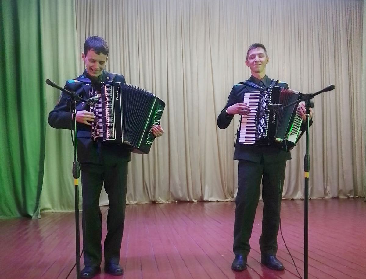 Открыл концертную программу солист военного оркестра Лидского пограничного отряда Владимир Беспалов – неоднократный победитель песенных конкурсов. Особенно понравилось зрителям попурри на тему советских песен. Николай Пивоварчик пел о любви к родной земле, о добрых делах для тех, кто рядом с нами. А музыкальные номера дуэта Матвея Чучы (баян) и Павла Чапли (аккордеон) подарили неповторимые мелодии, которые согрели сердце каждого зрителя.