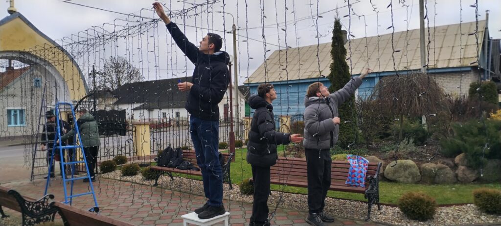 Участники проекта «Школа духовности – вместе по дороге к Храму» Ивьевского государственного колледжа совместно с настоятелем храма в честь святого мученика-младенца Гавриила Белостокского протоиереем Вячеславом Пашкевичем приняли участие в украшении прихрамовой территории к празднику Рождества Христова.
