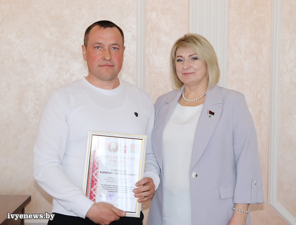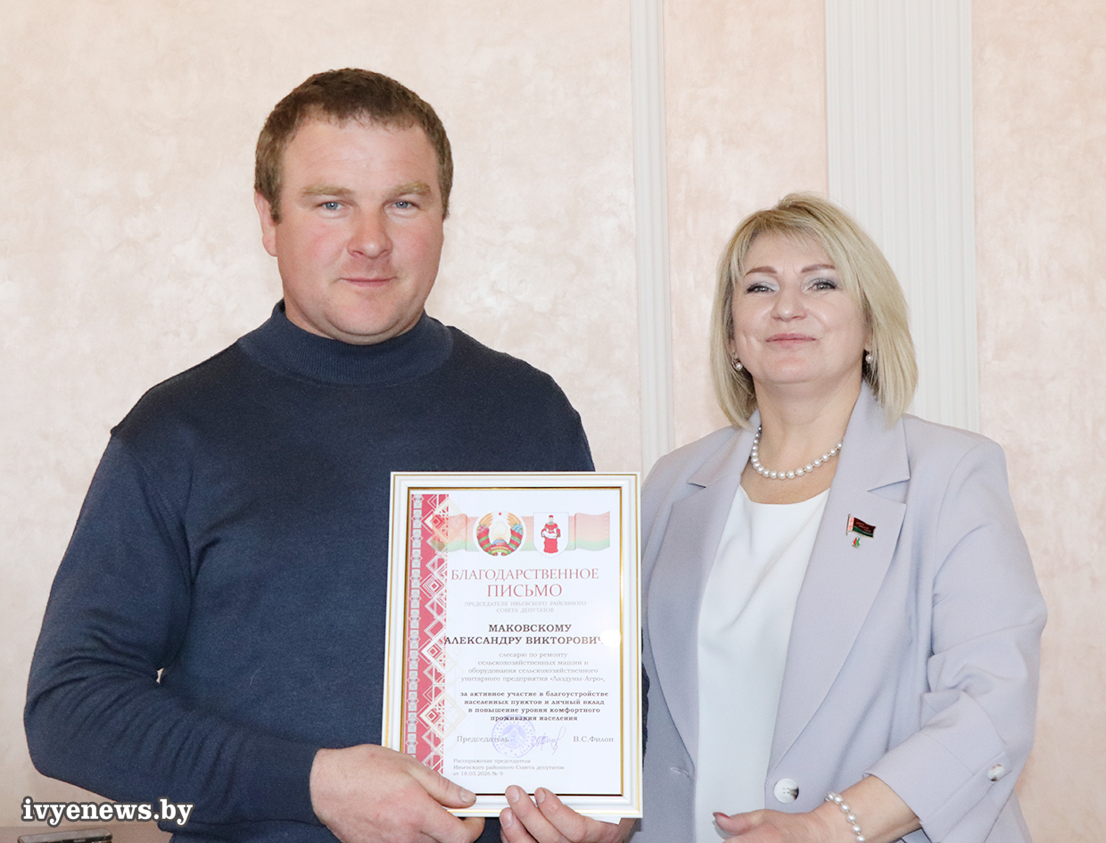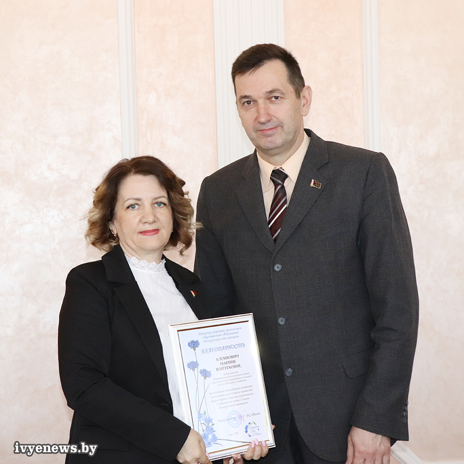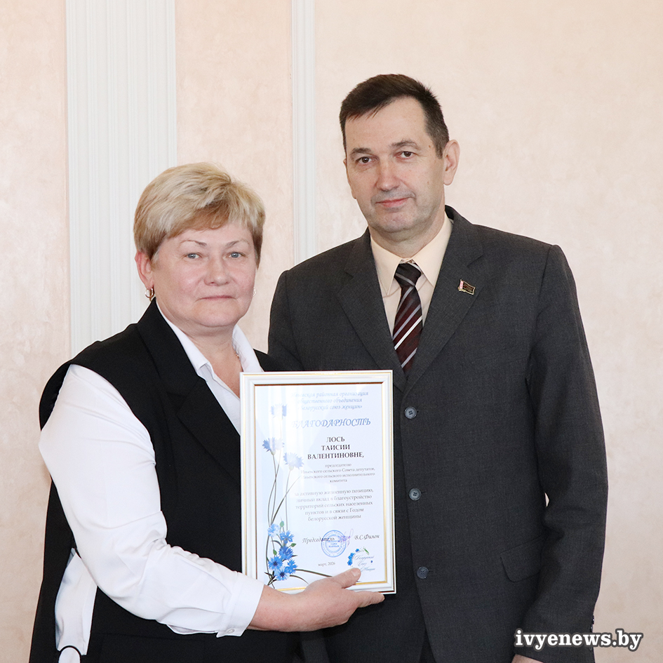 Председатели сельсоветов района Янина Бузар, Таисия Лось, Валентина Марусова и Марина Алехнович получили благодарности Ивьевской районной организации БСЖ за активную жизненную позицию, личный вклад в благоустройство территорий сельских населенных пунктов и в связи с Годом Белорусской женщины;  главный редактор учреждения «Редакция газеты «Іўеўскі край» Ирина Лысогор была награждена за активное участие в освещении вопросов благоустройства, информационное сопровождение деятельности сельских Советов депутатов.