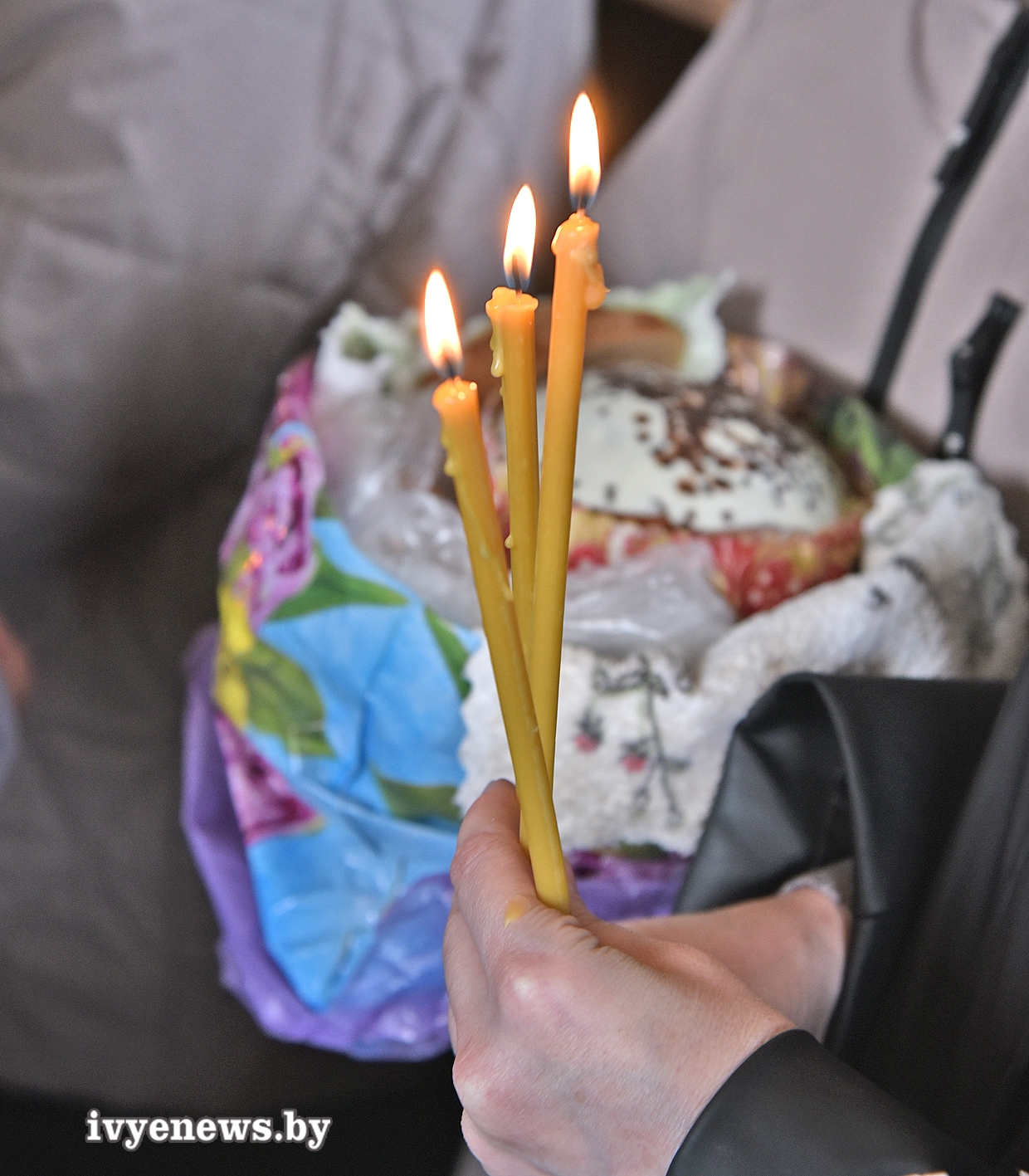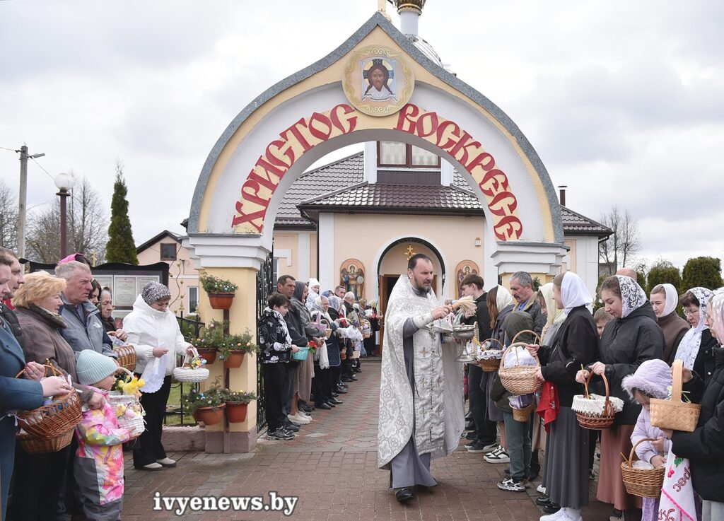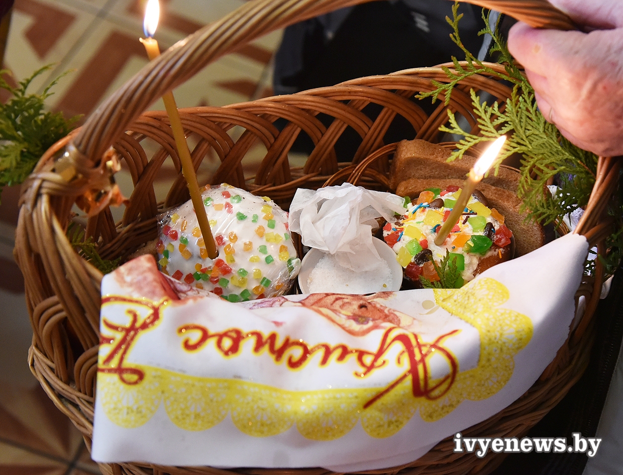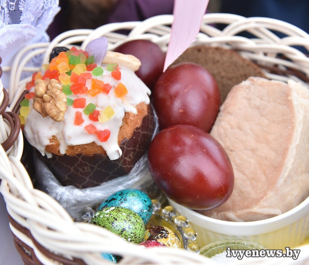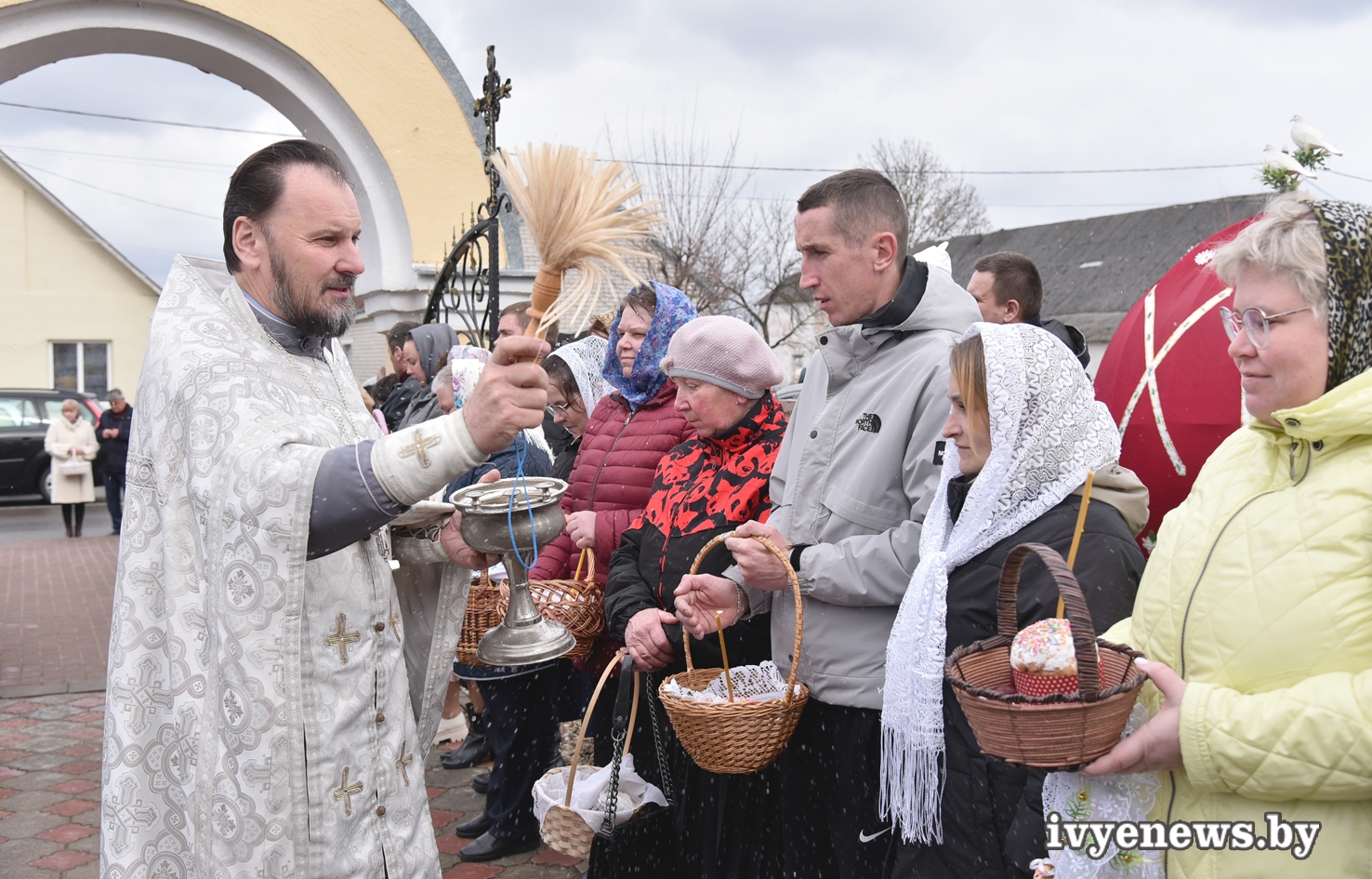 В Ивье православные верующие освятили пасхальные яйца и куличи.