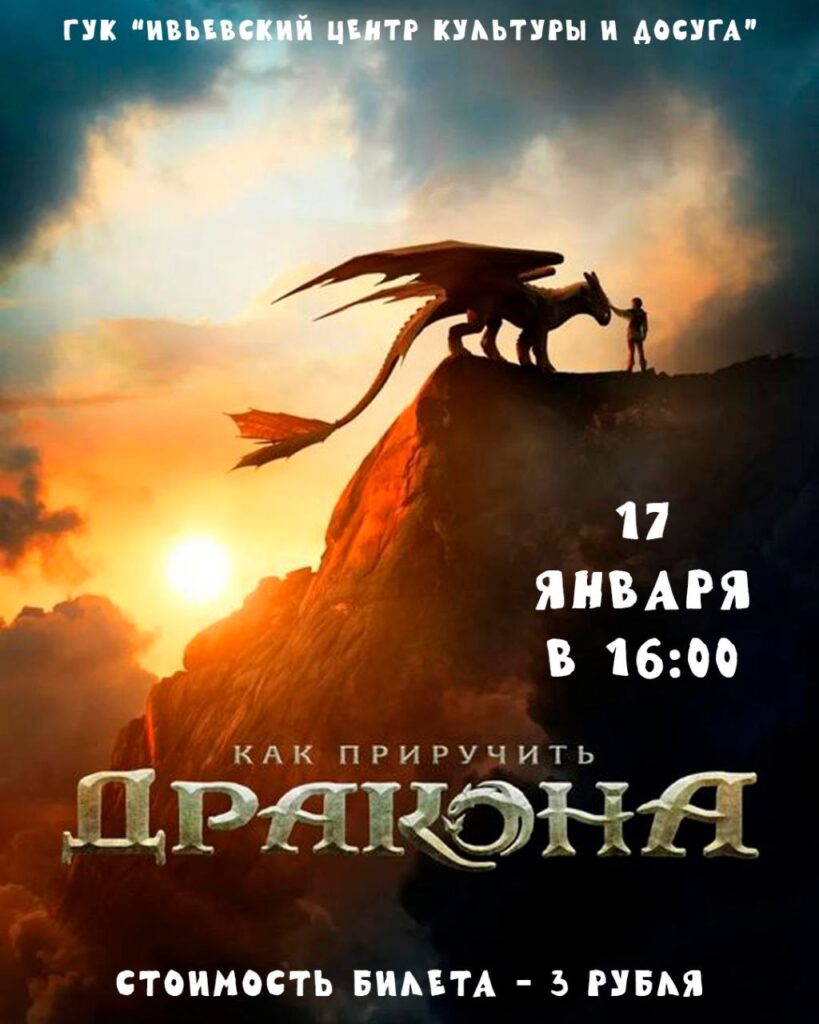 17 января в 16:00 в зрительном зале Ивьевского центра культуры и досуга состоится показ анимационного фильма «Как приручить дракона».