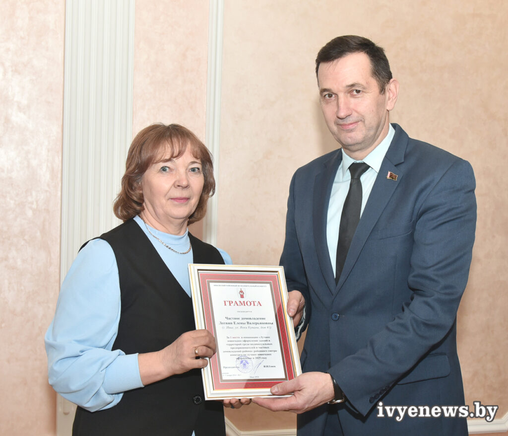 В номинации «Лучшее новогоднее оформление зданий и территорий среди индивидуальных предпринимателей и частных домовладений района» лучшим признано частное домовладение Елены Лотвин, расположенное в г. Ивье.