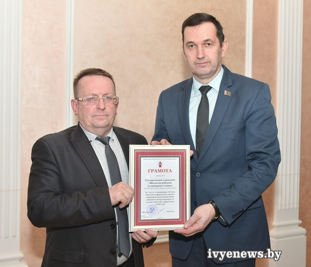 В номинации «Лучшее новогоднее оформление зданий и территорий среди организаций» первое место присуждено Ивьевской районной ветеринарной станции (руководитель В. Дедуль).