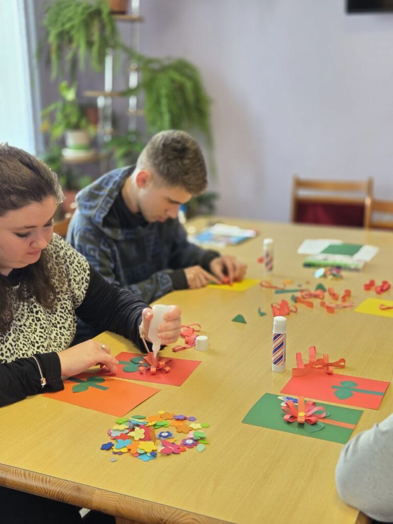 В преддверии Дня женщин в клубе молодых людей с инвалидностью «Контакт» отдела по организации досуга городского населения ГУК «Ивьевский центр культуры и досуга» прошёл мастер-класс по созданию открыток, который стал настоящим праздником творчества и вдохновения.