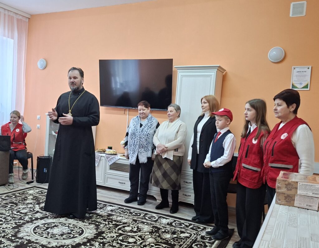 Специалисты и волонтеры «серебряного возраста» ТЦСОН Ивьевского района совместно с молодыми волонтёрами районной организации Белорусского Красного Креста, а также с настоятелем церкви города Ивье отцом Вячеславом Пашкевичем навестили проживающих в отделении круглосуточного пребывания для граждан пожилого возраста и инвалидов в деревне Лукашино.