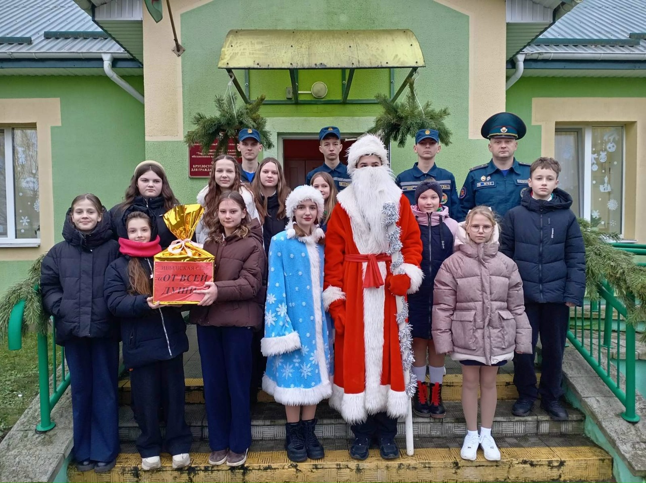 В преддверии Нового года учащиеся Ивьевской СШ (активисты пионерской дружины имени Олега Кошевого, члены первичной организации ОО «БРСМ», волонтеры отряда «Доброе сердце», БКК) члены военно-патриотического клуба «Пламя» Ивьевской СШ совместно с представителем Ивьевского районного отдела по чрезвычайным ситуациям, инспектором сектора идеологической работы и кадрового обеспечения, лейтенантом внутренней службы Евгением Викторовичем Касперовичем, посетили отделение круглосуточного проживания в д. Лукашино с новогодней концертной программой «От всей души» и подарками, которые учащиеся школы собирали с особым трепетом и теплотой.