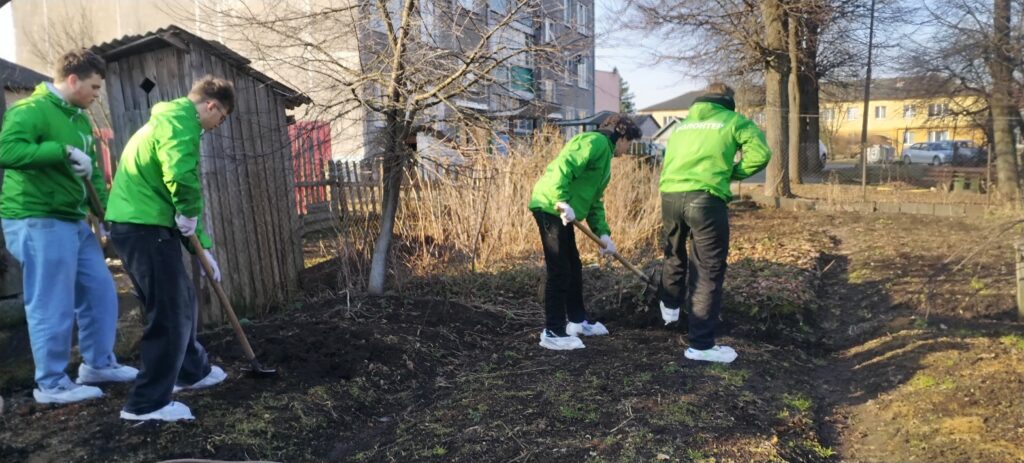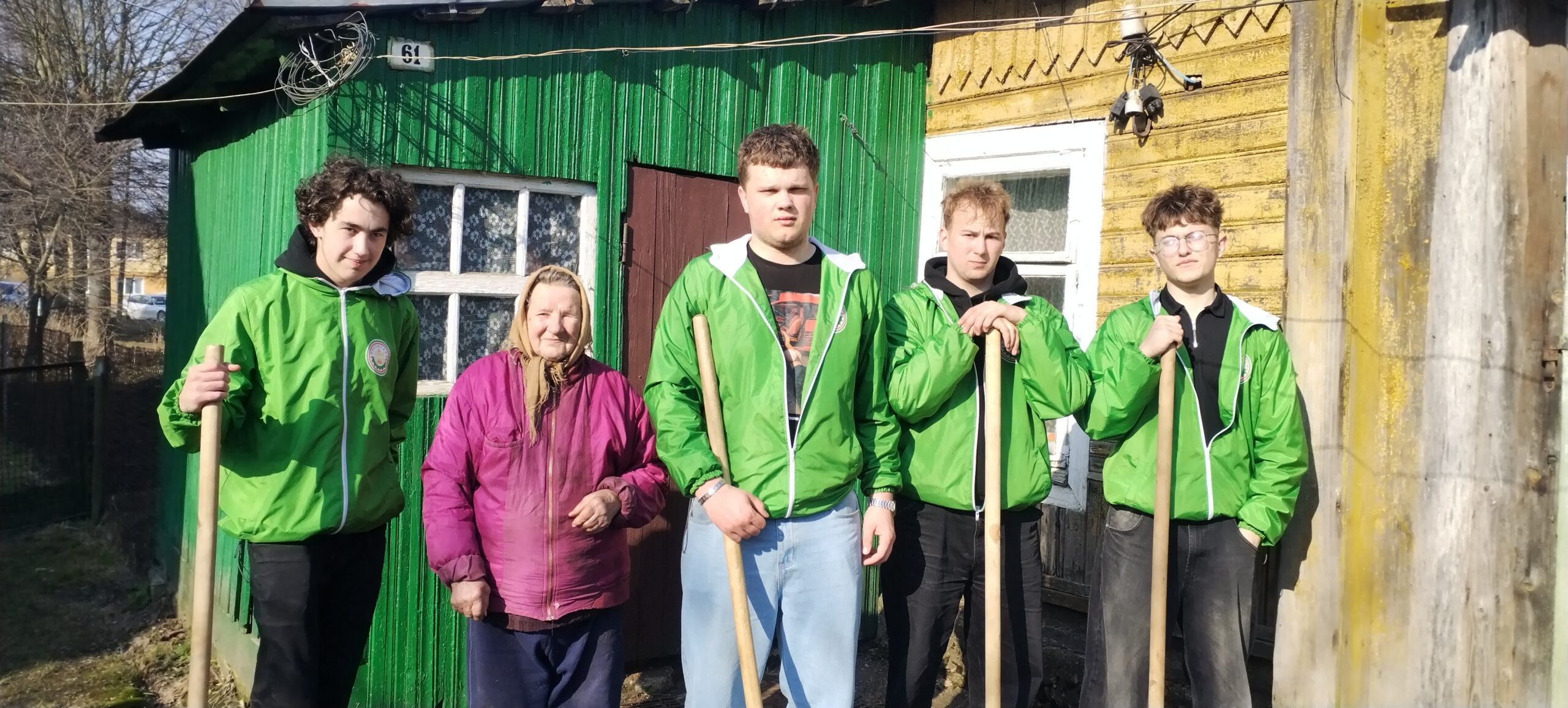 24 марта волонтеры «Твори добро» вскопали клумбы и грядки одиноко проживающей жительнице города Ивье Рене Имполитовне Пимоновой. Так как женщине некому помочь, волонтеры посещают ее по мере необходимости.
