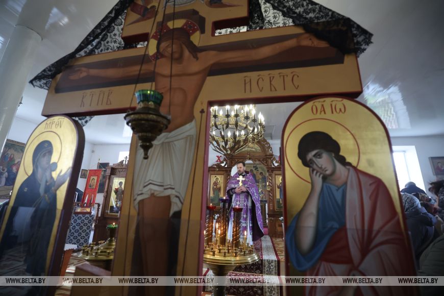 В местной церкви Святого Гавриила Белостокского, несмотря на рабочий день, людно. Служба в Чистый четверг собрала православных христиан, которые готовятся к Пасхе.