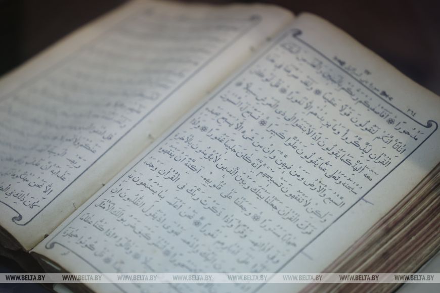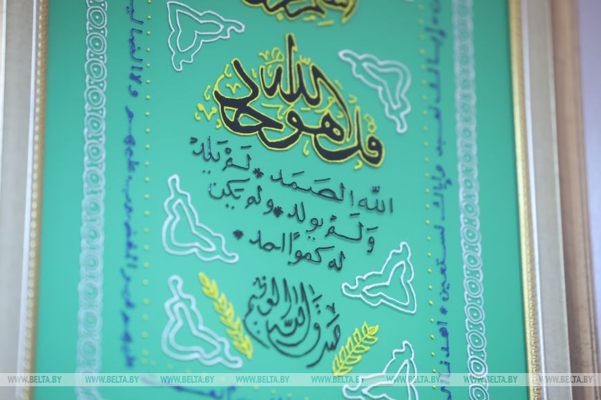 Еще один пример переплетения культур — уникальный домотканый рушник, украшенный не только традиционной цветочной вышивкой, но и изречением из Корана, сделанным арабской вязью. «Это мугир, выполненный на рушнике, здесь крупные цветы, какие испокон веков вышивали гладью наши бабушки и прабабушки, соседствует с сурой из Корана», — поясняет директор музея. И добавляет: «Ивьевские татары сохранили умение писать арабской вязью, а в 2024 году нематериальному проявлению творчества человека «Выраб мугіроў» в Ивьевском районе придан статус историко-культурной ценности. И еще одно интересное обстоятельство отмечают в музее: когда приезжают люди, владеющие арабским, они не могут прочитать тексты, переписанные местными жителями. Дело в том, что алфавит в них использован арабский, а язык — тот, на котором ивьевские татары разговаривают сегодня.